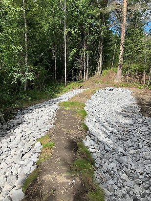 För att stoppa fortsatt grumling i Semsån har vi därför byggt en vall för att få vattnet att stanna upp innan det når ån. Tanken är att partiklar ska hinna sjunka ner till bottnen innan vattnet rinner vidare och att öringen så småningom kommer få lättare att hitta lekplatser för att föröka sig.