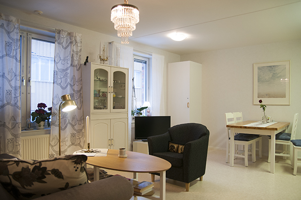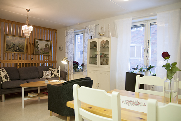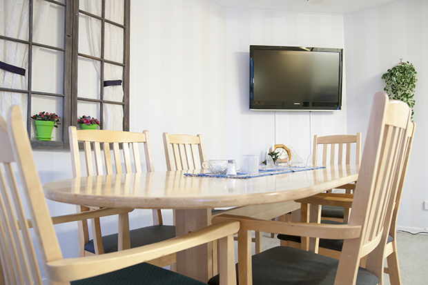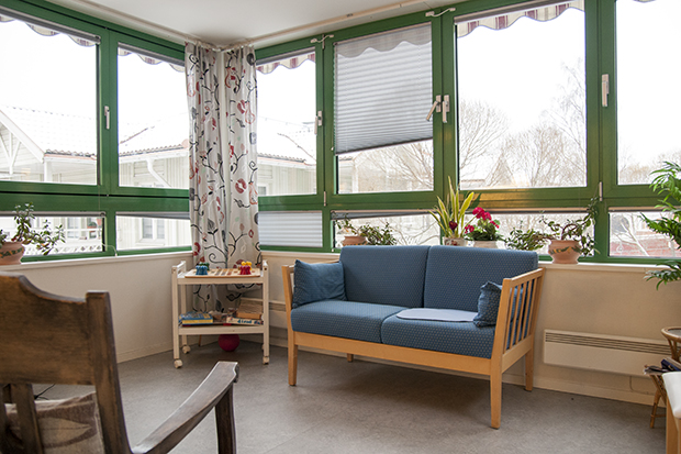 Boendet har gemensamma utrymmen där det erbjuds möjlighet att äta, umgås och delta i olika aktiviteter. I gemensamhetsutrymmena finns fina inglasade balkonger.