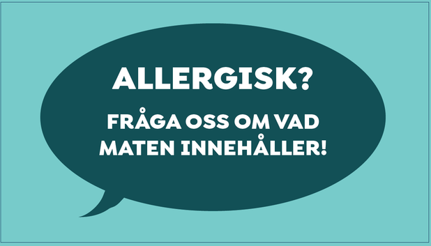 - Informationen kan ges muntligt, men då ska det finnas en tydlig skylt som hänvisar till personalen. Till exempel: ”Allergisk? Fråga oss om vad maten innehåller!”