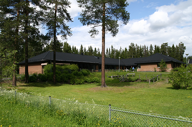 Gemensamma uteplatser finns och en stor tomt som angränsar mot kyrkan och bäcken.