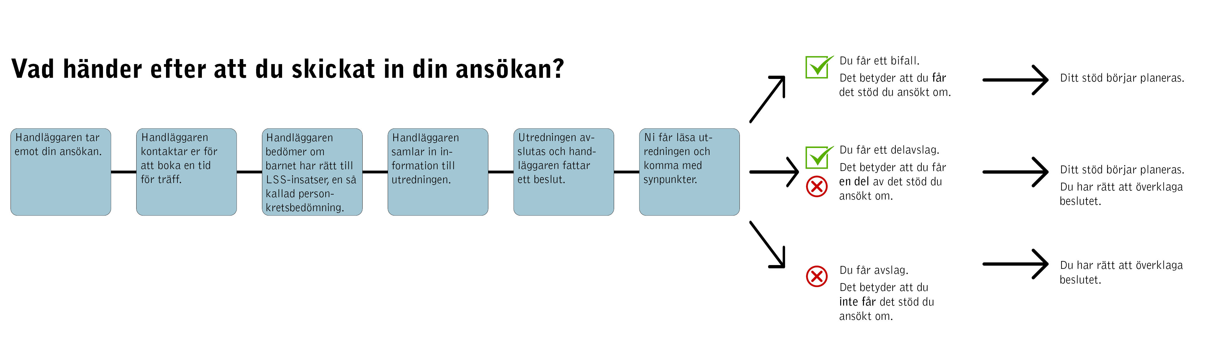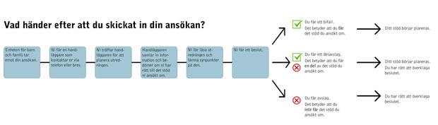 - Handläggaren samlar in information och bedömer om ni har rätt till det stöd ni ansökt om