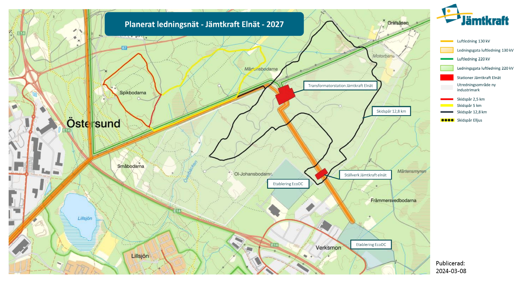 Jämtkraft räknar med att starta arbetet för bredare kraftledningsgata under senhösten/vintern 2025/2026. De skidspår som då är öppna kommer korsas av skogsmaskinerna. Skyltning i skidspåren kommer visa var det sker.